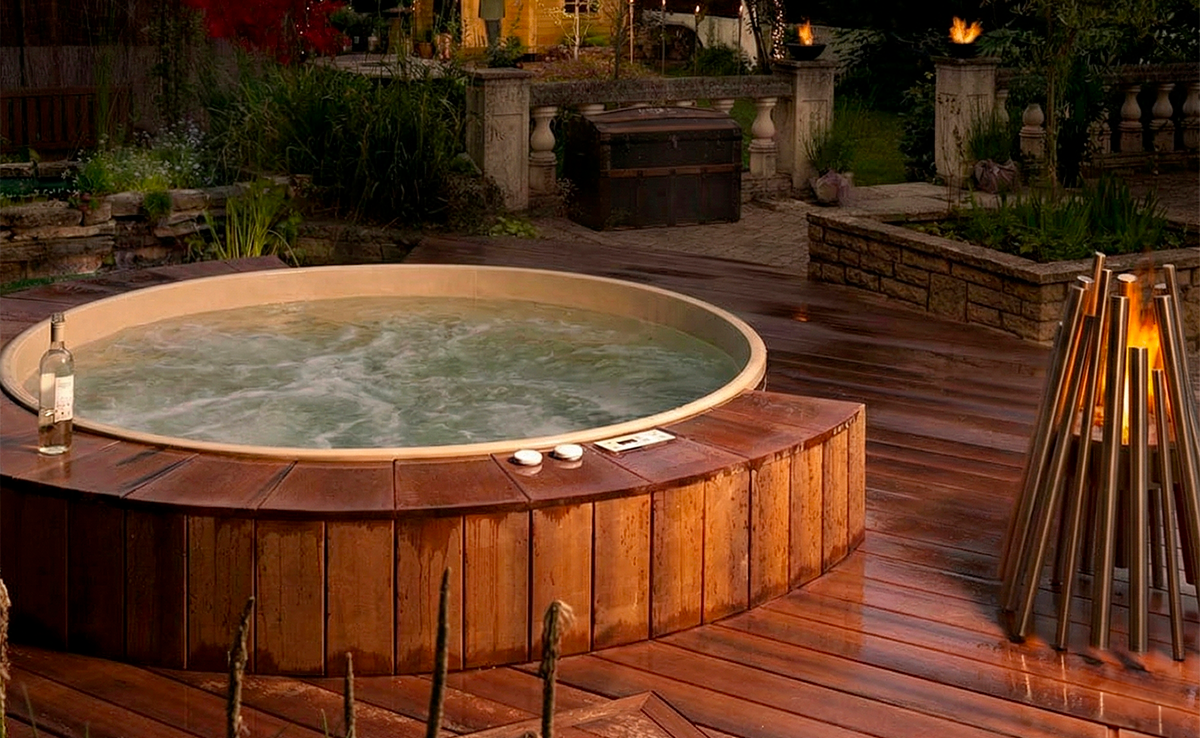 A stylish cedar hot tub that combines classic design with modern comfort. Ideal for unwinding and enjoying a luxurious outdoor soak.